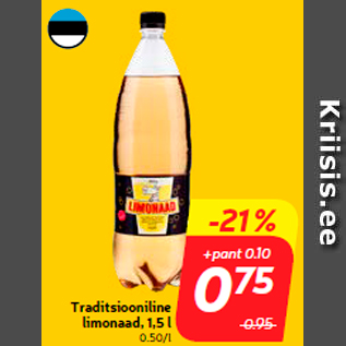 Период кампании: 06.08.2019 - 12.08.2019 Цена: 0.75€ Традиционный лимонад, 1,5 лTraditsiooniline