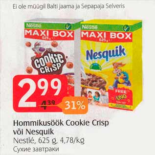 Ei ole müügil Balti jaamaja ja Sepapaja Selveris Hommikusöök Cookie Crisp või Nesquik