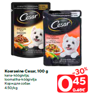 Период кампании: 03.09.2019 - 09.09.2019 Цена: 0.45€ Корм для собакkana-köögivilja; loomaliha-köögivilja Koeraeine Cesar, 100 g