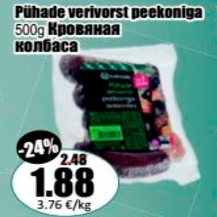 Период кампании: 02.12.2019 - 15.12.2019 Цена: 1.88€ Кровяная колбасаPühade verivorst peekoniga 500 g