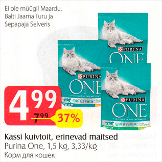 Период кампании: 03.12.2019 - 02.01.2020 Цена: 4.99€ Корм для кошекPurina One, 1,5 kg
