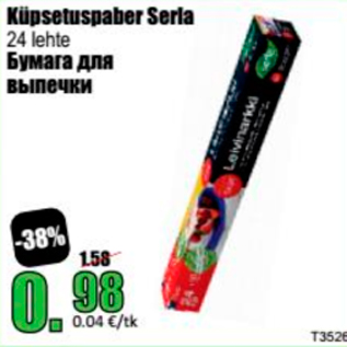 Период кампании: 16.12.2019 - 22.12.2019 Цена: 0.98€ Бумага для выпечки24 lehte Küpsetuspaber Serla
