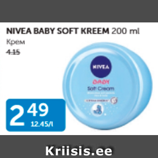 Период кампании: 07.01.2020 - 20.01.2020 Цена: 2.49€ КРЕМNIVEA BABY SOFT KREEM 200 ML