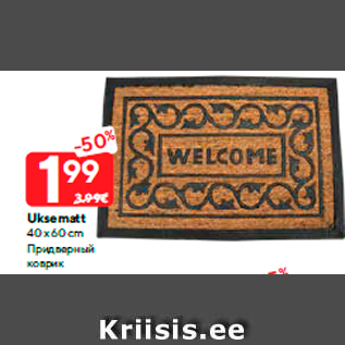 Период кампании: 21.01.2020 - 27.01.2020 Цена: 1.99€ Придверный коврик40 x 60 cm Uksematt