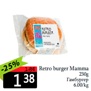 Период кампании: 10.02.2020 - 16.02.2020 Цена: 1.38€ ГамбургерRetro burger Mamma