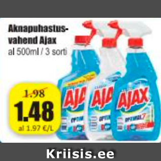 Период кампании: 06.03.2020 - 12.03.2020 Цена: 1.48€ Средство для мытья окон Ajaxal 500 ml / 3 sorti Aknapuhastusvahend Ajax