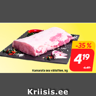 Период кампании: 10.03.2020 - 16.03.2020 Цена: 4.19€ Филе свинины без кожуры, кгKamarata sea välisfilee, kg