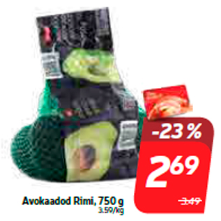 Продукт авокадо rimi, 750 г продавался со скидкой в магазине Hüper Rimi, Rimi, Mini Rimi в период с 17.03.2020 по 23.03.2020 по цене 2.69 евро.