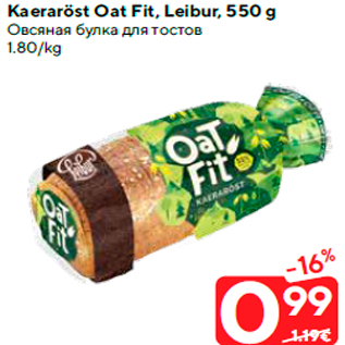 Период кампании: 31.03.2020 - 06.04.2020 Цена: 0.99€ Овсяная булка для тостовKaeraröst Oat Fit, Leibur, 550 g