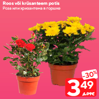 Товар роза или хризантема в горшке продавался со скидкой в магазине Maxima в период с 05.05.2020 по 11.05.2020 по цене 3.49 евро.