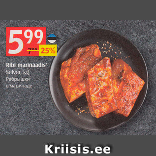 Период кампании: 12.05.2020 - 01.06.2020 Цена: 5.99€ Ребрышки в маринадеselver, kg