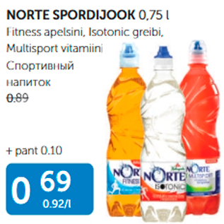 Период кампании: 12.05.2020 - 25.05.2020 Цена: 0.69€ СПОРТИВНЫЙ НАПИТОКFitness apelsini, Isotonic greibi, Multisport vitamiini NORTE SPORDIJOOK 0,75 L