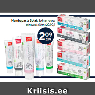Период кампании: 04.06.2020 - 17.06.2020 Цена: 2.09€ Зубная пастаerinevad; 100 ml; 20.90/l Hambapasta Splat