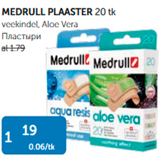 Период кампании: 16.06.2020 - 29.06.2020 Цена: 1.19€ ПЛАСТЫРИveekindel, Aloe Vera MEDRILL PLAASTER 20 tk