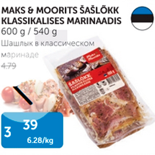 Период кампании: 30.06.2020 - 06.07.2020 Цена: 3.39€ ШАШЛЫК В КЛАССИЧЕСКОМ МАРИНАДЕ600 G / 540 G MAKS & MOORITS ŠAŠLÕKK KLASSIKALISES MARINAADIS