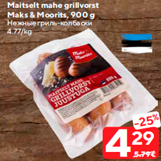 Период кампании: 28.07.2020 - 03.08.2020 Цена: 4.29€ Нежные гриль-колбаскиMaitselt mahe grillvorst