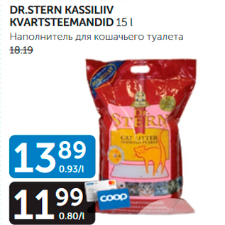 Период кампании: 04.08.2020 - 10.08.2020 Цена: 11.99€ НАПОЛНИТЕЛЬ ДЛЯ КОШАЧЬЕГО ТУАЛЕТАDR.STERN KASSILIIV KVARTSTEEMANDID 15 L