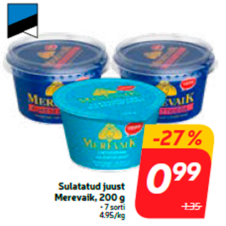Период кампании: 15.09.2020 - 21.09.2020 Цена: 0.99€ Плавленый сыр Merevaik, 200 г• 7 sorti Sulatatud juust