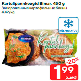 Период кампании: 27.10.2020 - 02.11.2020 Цена: 1.99€ Замороженные картофельные блиныKartulipannkoogid Bimar, 450 g