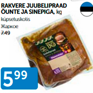 Период кампании: 01.12.2020 - 14.12.2020 Цена: 5.99€ ЖАРКОЕküpsetuskolis RAKVERE JUUBELIPRAAD ÕUNTE JA SINEPIGA, kg