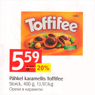 Период кампании: 08.12.2020 - 07.01.2021 Цена: 5.59€ Орехи в карамелиStorck, 400 g Pähkel karamellis Toffifee