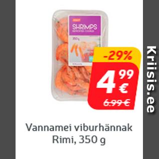 Период кампании: 08.12.2020 - 14.12.2020 Цена: 4.99€ Креветки Rimi, 350 гVannamei viburhännak Rimi, 350 g