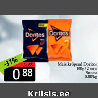 Период кампании: 14.12.2020 - 20.12.2020 Цена: 0.88€ Чипсы100 g / 2 sorti Maisikrõpsud Doritos