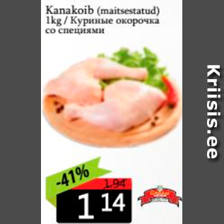Период кампании: 14.12.2020 Цена: 1.14€ Куриные окорочка со специями(maitsestatud) 1 kg Kanakoib