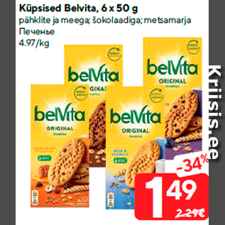 Период кампании: 15.12.2020 - 21.12.2020 Цена: 1.49€ Печеньеpähklite ja meega; šokolaadiga; metsamarja Küpsised Belvita, 6 x 50 g