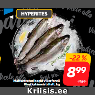 Продукт приправленная радужная форель, кг продавался со скидкой в магазине Hüper Rimi в период с 15.12.2020 по 21.12.2020 по цене 8.99 евро.