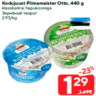 Период кампании: 22.12.2020 - 28.12.2020 Цена: 1.29€ Зернёный творогklassikaline; hapukoorega Kodujuust Piimameister Otto, 440 g