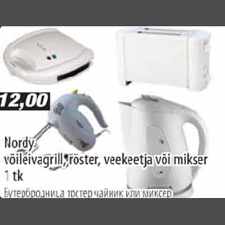 Kampaania periood: 03.03.2011 - 16.03.2011 Nordy võileivagrill, röster, veekeetja või mikser