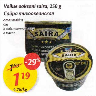 Kampaania periood: 27.11.2012 - 03.12.2012 Hind: 1.19€ Vaikse ооkеаni saira,250 g
