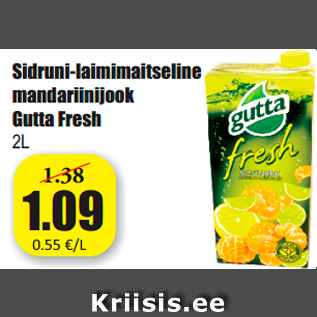 Kampaania periood: 05.11.2014 - 11.12.2014 Hind: 1.09€ Sidruni-laimimaitseline mandariinijook Gutta Fresh 2L