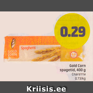 Kampaania periood: 02.04.2016 - 08.04.2016 Hind: 0.29€ Gold Corn spagetid, 400 g